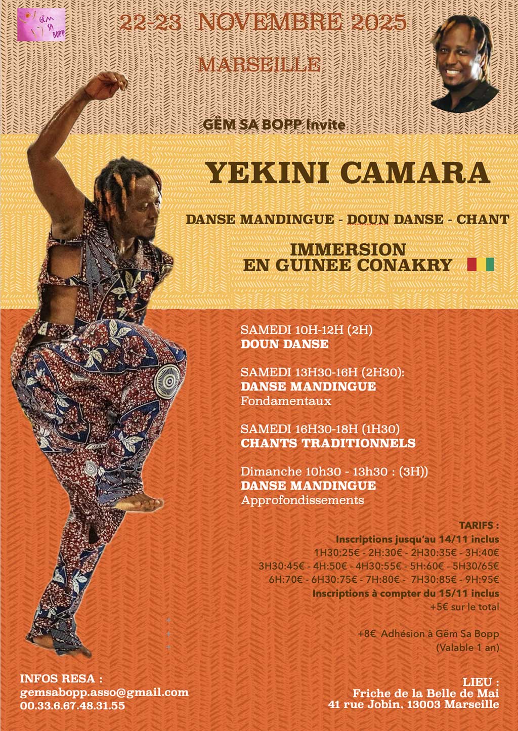 Les 22 et 23 novembre 2025, Gëm Sa Bopp a le plaisir de vous inviter à une immersion en Guinée Conakry avec Yékini Camara.